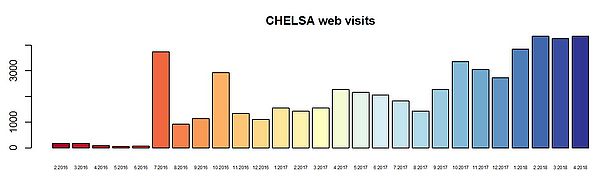 CHELSA (Climatologies à haute résolution pour les surfaces terrestres) est un jeu de données climatiques à haute résolution pour la surface terrestre de l'ensemble du globe. Hébergé par l'Institut fédéral de recherches sur la forêt, la neige et le paysage WSL, il est très apprécié des écologistes intéressés à la répartition des espèces. Les données sur la température et les précipitations aident à modéliser les conditions de vie des espèces.